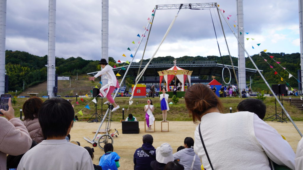 イベントのクライマックスでは、瀬戸内サーカスファクトリーによるサーカス公演がスタート。空中での息をのむパフォーマンスや、手に汗握るようなバランス芸に観客は固唾をのんで見守り、成功するたびに里山に大きな拍手が響き渡りました。
