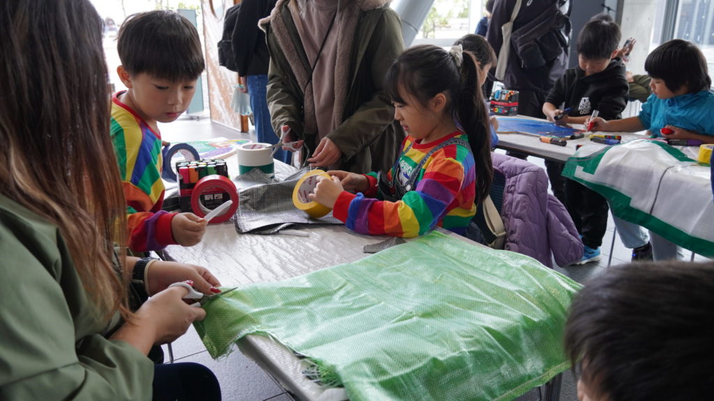 2日(日)には「はーばりーカップ」も開催。ビニールシートをガムテープで貼り合わせてつくるビブスは、カラフルなテープで彩られたり、チーム名や背番号が書かれたりと、チームの一体感が高まるオリジナルアイテムに大変身!そして、子どもたちが思い思いに色を重ねて完成したゴールキーパーは、新たなチームの一員として「はーばりーカップ」を盛り上げてくれます。