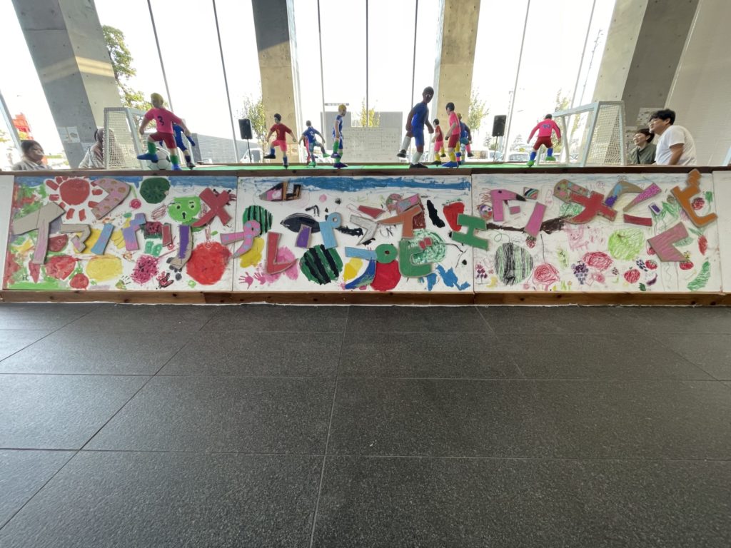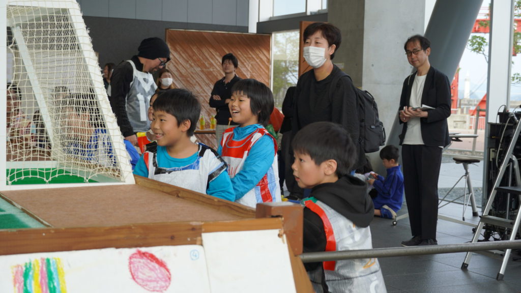 巨大サッカーボードゲームが熱戦の舞台となる一方、この装置そのものもまた、子どもたちの自由な表現のキャンバスになりました。