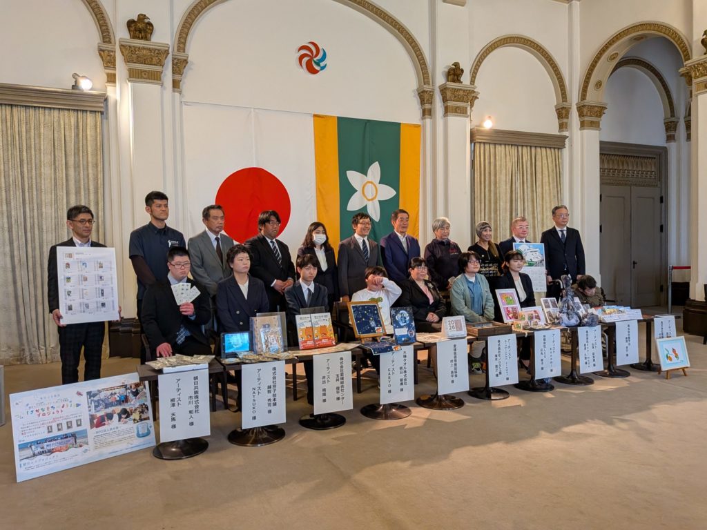 本日、社会福祉法人来島会は、社会福祉法人来島会は愛媛県庁を訪れ、中村時広知事に対し、令和7年度「障がい者アート商品化支援事業」の成果報告を行いました。