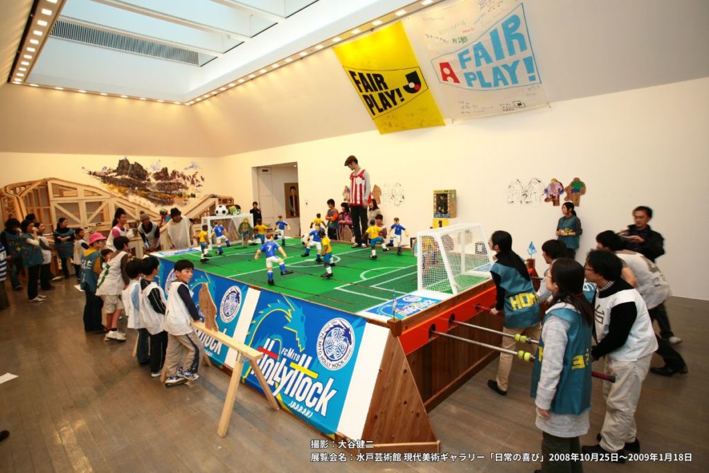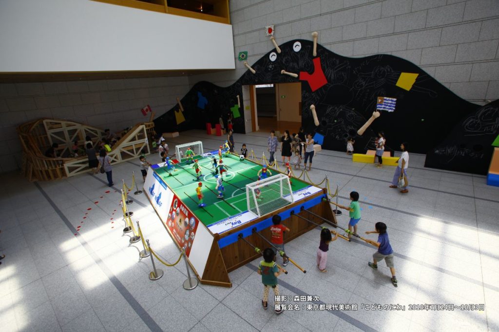 シンポジウム当日ははーばりーに設置する「巨大サッカーボードゲーム」(写真参照)をステージに、パネリストが実際に登壇。市民が周囲を囲む形式でセッションを行います。