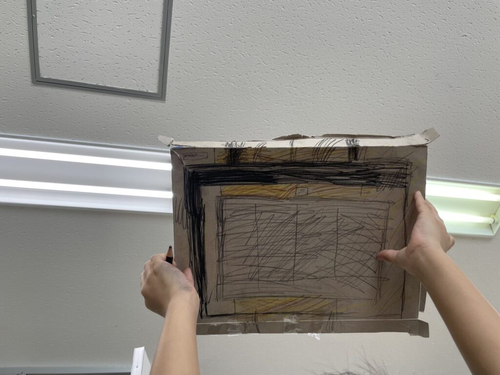 スケッチブックへのスケッチから始まり、図鑑やインターネットで構造を調べ、ついには段ボールでエアコンを再現するなど、その表現方法は多岐にわたります。